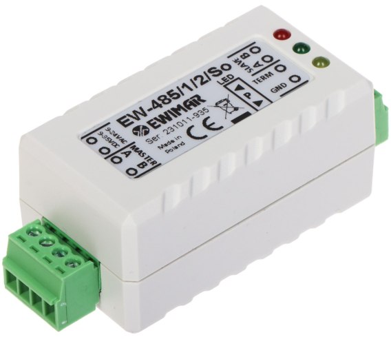 Separator EW-485/1/2/SO przeznaczony jest do separacji galwanicznej urządzeń połączonych za pomocą magistrali RS-485. Eliminuje zakłócenia transmisji i możliwe uszkodzenia nadajników linii RS-485, które są wynikiem różnic potencjałów.