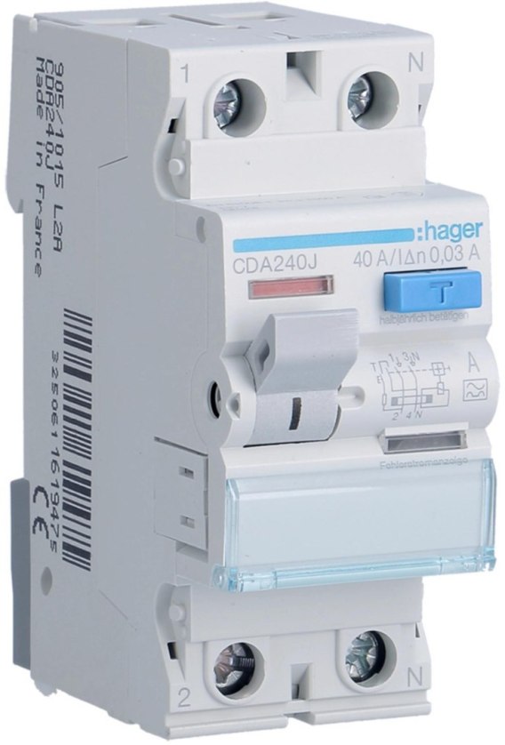 HAGER RCCB Wyłącznik różnicowoprądowy 1P+N 40A 30mA 6kA A CDA240J