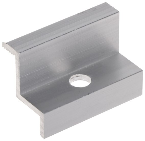 Klamra końcowa, przeznaczona do mocowania skrajnie rozstawionych paneli fotowoltaicznych na profilu montażowym