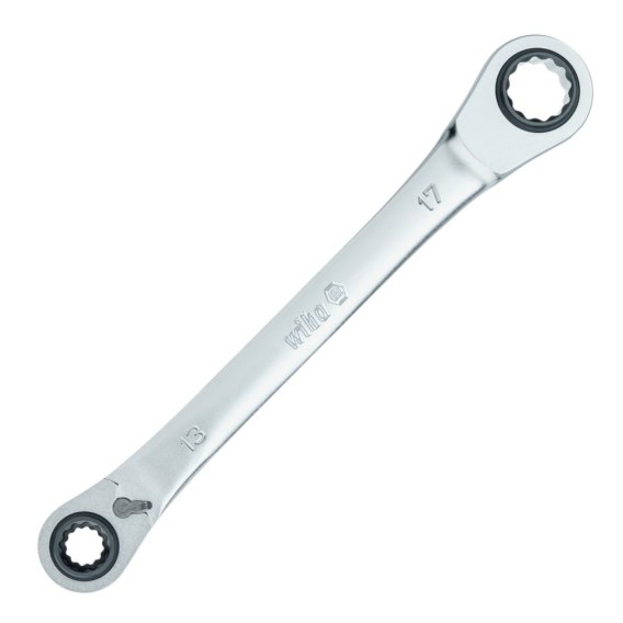 Odkręcenie mocno przykręconych śrub wymaga zastosowania ogromnej siły. Dwuoczkowym kluczem z grzechotką Wiha użytkownik może, dzięki zasadzie dźwigni, łatwo poluzować każde połączenie śrubowe. Dzięki czterem różnym rozwartościom klucza użytkownik może za pomocą tylko jednego narzędzia pracować z profilami śrub 10/13/17/19 mm. Pozwala to zminimalizować masę wyposażenia pracownika i zaoszczędzić w skrzynce narzędziowej miejsce na inny sprzęt. Również przy pracach z użyciem dwuoczkowego klucza z grzechotką 4 w 1 użytkownik dzięki sześciokątowi podwójnemu i drobnemu uzębieniu z 72 zębami korzysta z krótkiego kąta powrotu 5° i najwyższego komfortu podczas prac w wąskich miejscach. Dzięki wbudowanej dźwigni bez problemu można przełączać kierunek obrotów. Ponadto geometria podwójnego sześciokąta umożliwia równe nasadzenie na obrabiany element i dzięki temu zmniejsza niebezpieczeństwo ześlizgnięcia się narzędzia. Poprzez prosty obrót wokół własnej osi można wybierać między różnymi rozwartościami. Wyprodukowany z wysokiej jakości stali chromowo-wanadowej, regulowany dwuoczkowy klucz z grzechotką, jest trwały i niezawodny, również dzięki odpornej na korozję i łatwej do czyszczenia powierzchni.