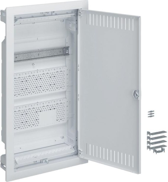 Rozdzielnica podtynkowa multimedialna Hager volta VU36NWB to idealne rozwiązanie do organizacji okablowania i urządzeń multimedialnych w domu lub mieszkaniu. Wyposażona w szynę TH i perforowane płyty montażowe. Cechuje ją łatwość montażu, posiada wbudowaną poziomicę, ramkę maskującą nierówności tynku oraz elementy mocujące. Zapewnia maksymalne bezpieczeństwo (II klasa ochronności, IP30). Dostarczana z stalowymi wentylowanymi drzwiami.
