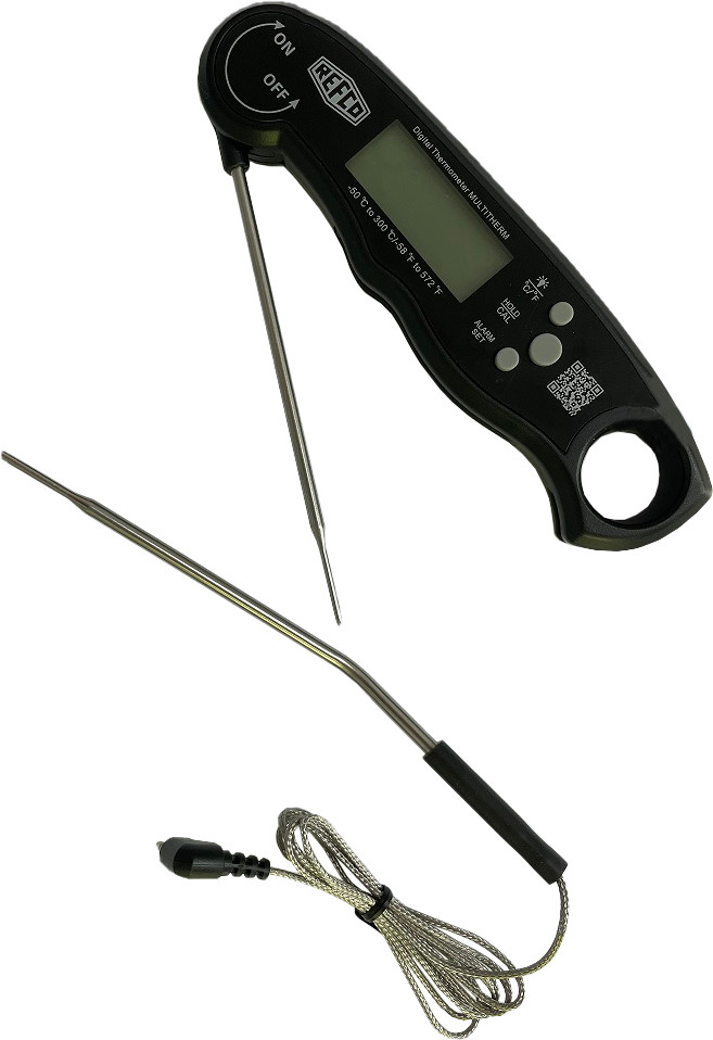 - Termometr elektroniczny z dodatkową sondą Refco MULTITHERM posiada automatyczny włącznik (uruchamia się po otwarciu sondy).
