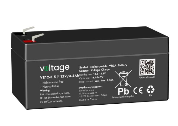 Akumulator AGM Voltage 12V 3.5Ah VE12-3.5 (Żywotność 6-9 lat) - najważniejsze cechy: