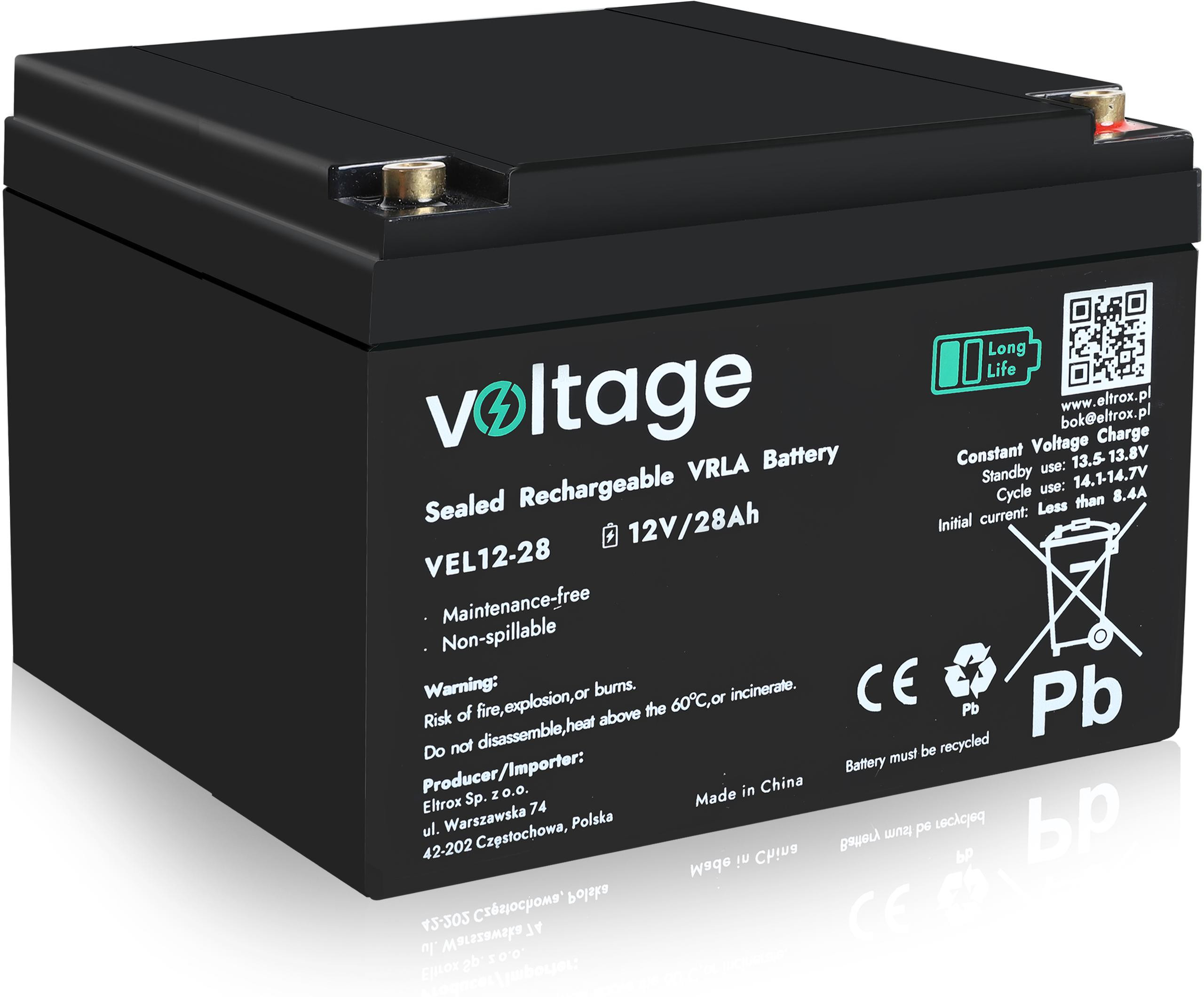 Akumulator AGM Voltage Long Life 12V 28Ah VEL12-28 (Żywotność 15 lat) - najważniejsze cechy: