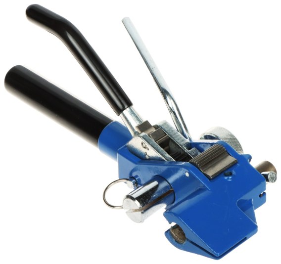 Bandownica BAND-0.1-2/10-20 to uniwersalne narzędzie stosowane do naprężania i ucinania taśmy stalowej różnej wielkości