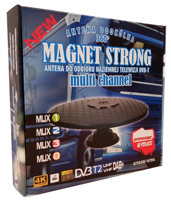 Antena DVB-T MAGNET jest uniwersalną anteną do odbioru programów telewizyjnych analogowych i cyfrowych DVB-T, DVB-T2, radia DAB, DAB+.