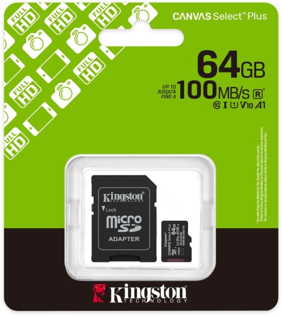 • Karta pamięci microSD 64GB Kingston Canvas Select Plus microSDXC C10 UHS-1 64GB