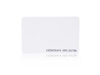 Karta zbliżeniowa cienka PVC 13.56 MHz MIFARE® Classic 1K z wydrukowanym numerem, rozmiar ISO, możliwość nadruku zdjęcia i tekstu przy użyciu dedykowanych drukarek PVC, pamięć 1kB.