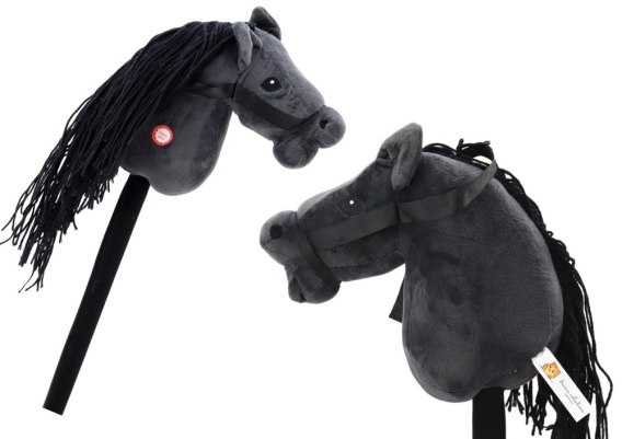 Pluszowa Głowa Konia Na Kiju Hobby Horse Koń Długowłosy Czarny Dźwięki