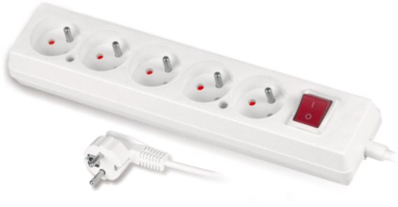 Przedłużacz z pięciokrotnym gniazdem z wyłącznikiem 3x2p+Z 10A 5m biały