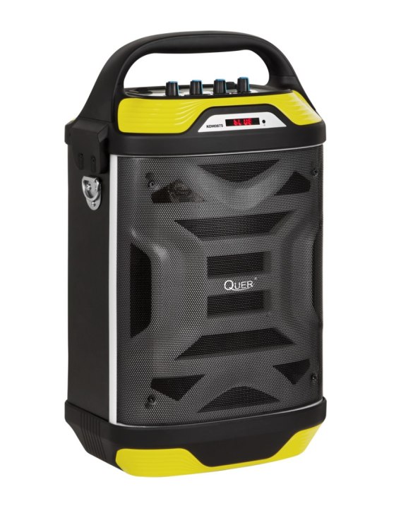 Przenośny aktywny zestaw głośnikowy Quer z MP3, Bluetooth, radio FM i funkcją karaoke idealnie sprawdzi się podczas spotkań towarzyskich. Bateria o pojemności 1800 mAh sprawia, że każda impreza plenerowa nabierze nowego charakteru. Głośnik pomoże umilić chwile przez ponad 2,5 godziny bez konieczności ładowania. Urządzenie zapamiętuje 60 stacji radiowych, a ulubiona muzykę można odtwarzać nie tylko bezprzewodowo poprzez Bluetooth, ale także z pamięci USB lub kart microSD. Do zestawu dołączony jest także mikrofon oraz pilot do zdalnego sterowania. Zestaw jest niewielki i lekki, co sprawia, że przenoszenie go nie sprawi najmniejszych kłopotów.