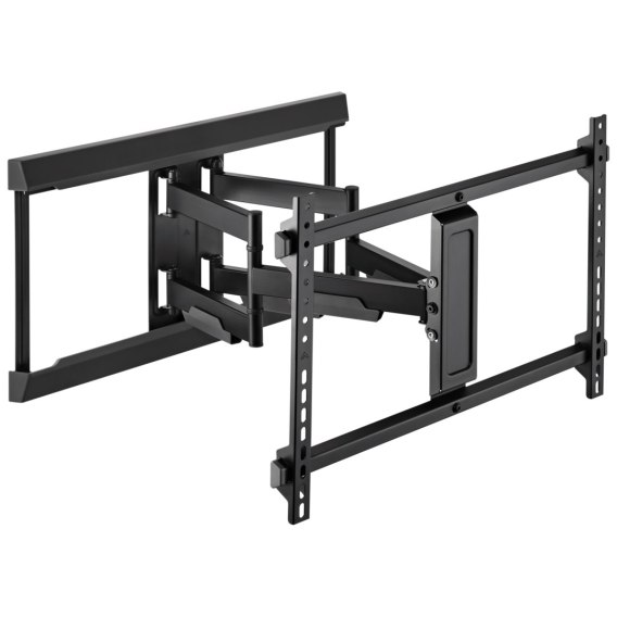 BRATECK-LPA76-466 to uchwyt ścienny z pełną regulacją, pasujący do telewizorów o przekątnej 37-80″, który pozwala na płynne pochylenie +5°/-10°, obrót ±60° oraz delikatne poziomowanie ekranu ±3°. Konstrukcja oparta na solidnych ramionach utrzymuje urządzenia o wadze do 60 kg i umożliwia wysunięcie od ściany w zakresie 63 - 536 mm. Wyposażony w funkcję lateral shift dla łatwego dopasowania po montażu oraz estetyczne maskownice z systemem zarządzania kablami.