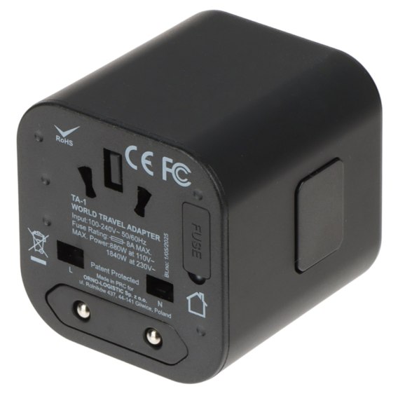 Kompaktowy adapter sieciowy wyposażony w uniwersalne gniazdo wejściowe z systemem rozkładanych wtyczek umożliwia podłączenie urządzeń do gniazdek w ponad stu krajach na całym świecie