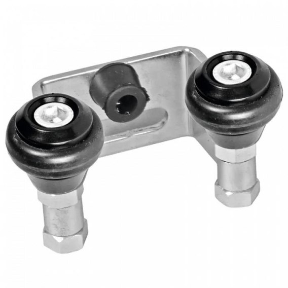 Stalowy element - uchwyt górny do bram przesuwnych samonośnych i szynowych, który stabilizuje je po zamknięciu uniemożliwiając ruchy boczne. Uchwyt posiada gumowane rolki zmniejszające hałas podczas zamykania bramy, a także gumowy odbój. Rozstaw między rolkami wynosi 42 mm. Produkt ocynkowany.