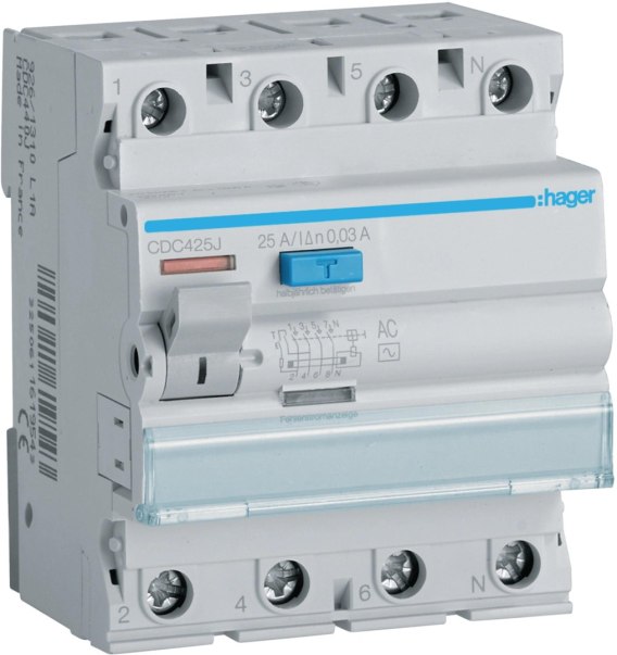 Wyłącznik różnicowoprądowy 3P+N 25A 30mA 6kA AC HAGER CDC425J