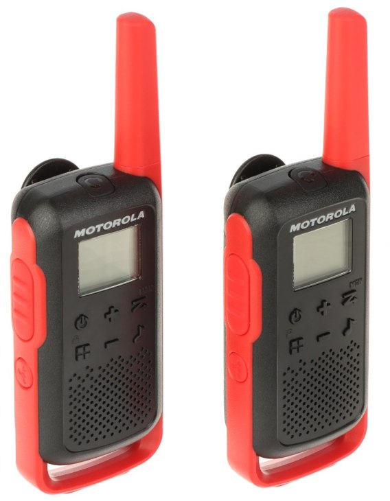 Zestaw radiotelefonów MOTOROLA-T62/RED pozwala komunikować się drogą radiową za pośrednictwem 16 kanałów dostępnych w paśmie PMR (Private Mobile Radio)