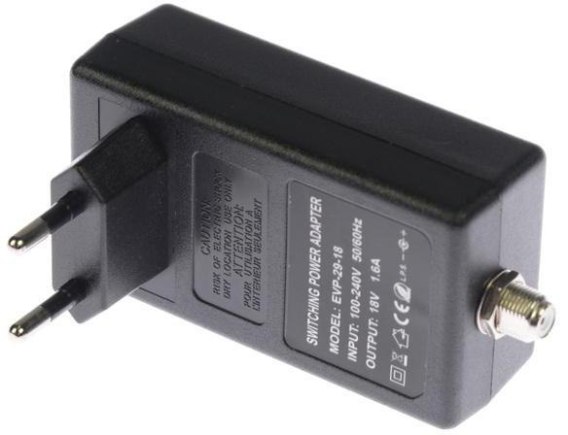 - Krótki opis: Zasilacz 18V 1.6 A , do multiswitchy marki Blue Line i innych , końcówka typu F. Do starszych typów należy zakupić adapter gn.F -> wtyk RCA.